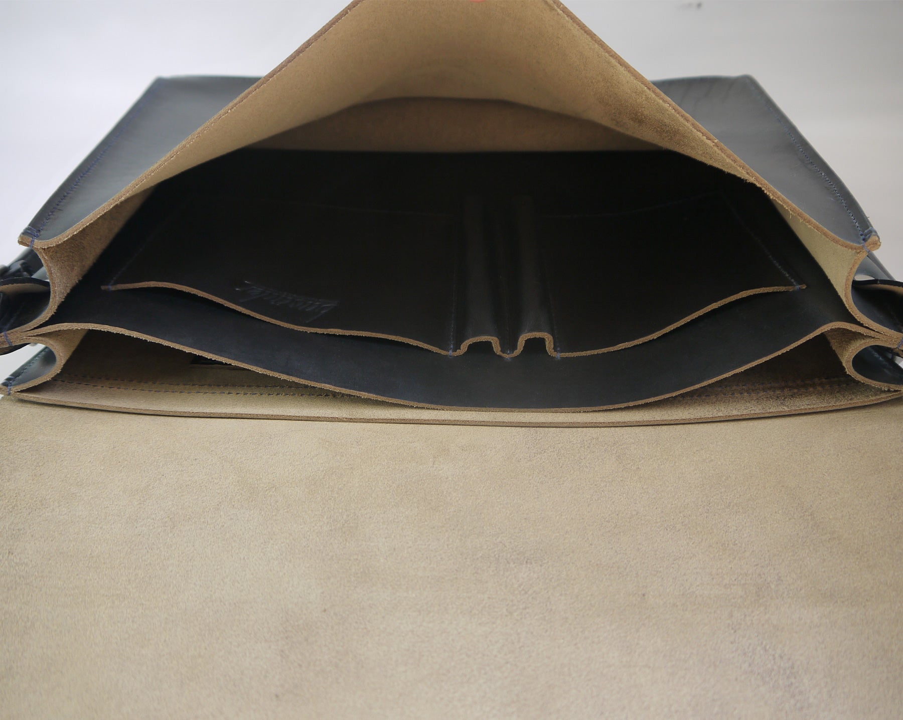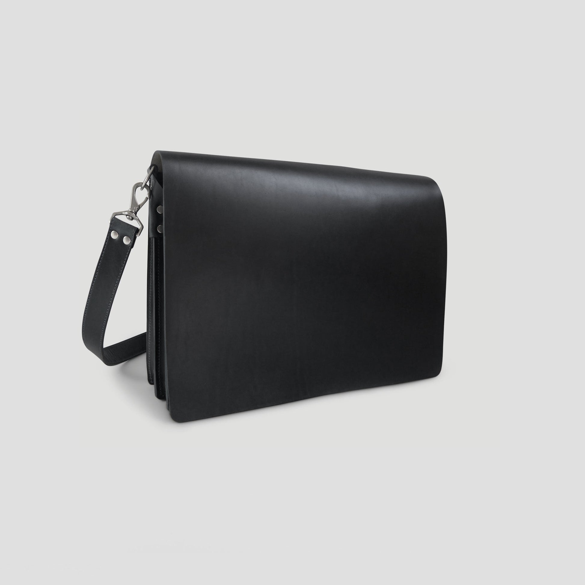 A ready to ship Black Minimal - Crafted with a passion for minimalism and impeccable craftsmanship, our timeless messenger bag is a longstanding favorite among our customers. The bag is made from luxurious Horween Chromexcel leather, a remarkable material infused with wax and oil, known for its self-healing properties. Clean and simple, with a design left to the bare minimum, yet created to hold all your daily essentials.