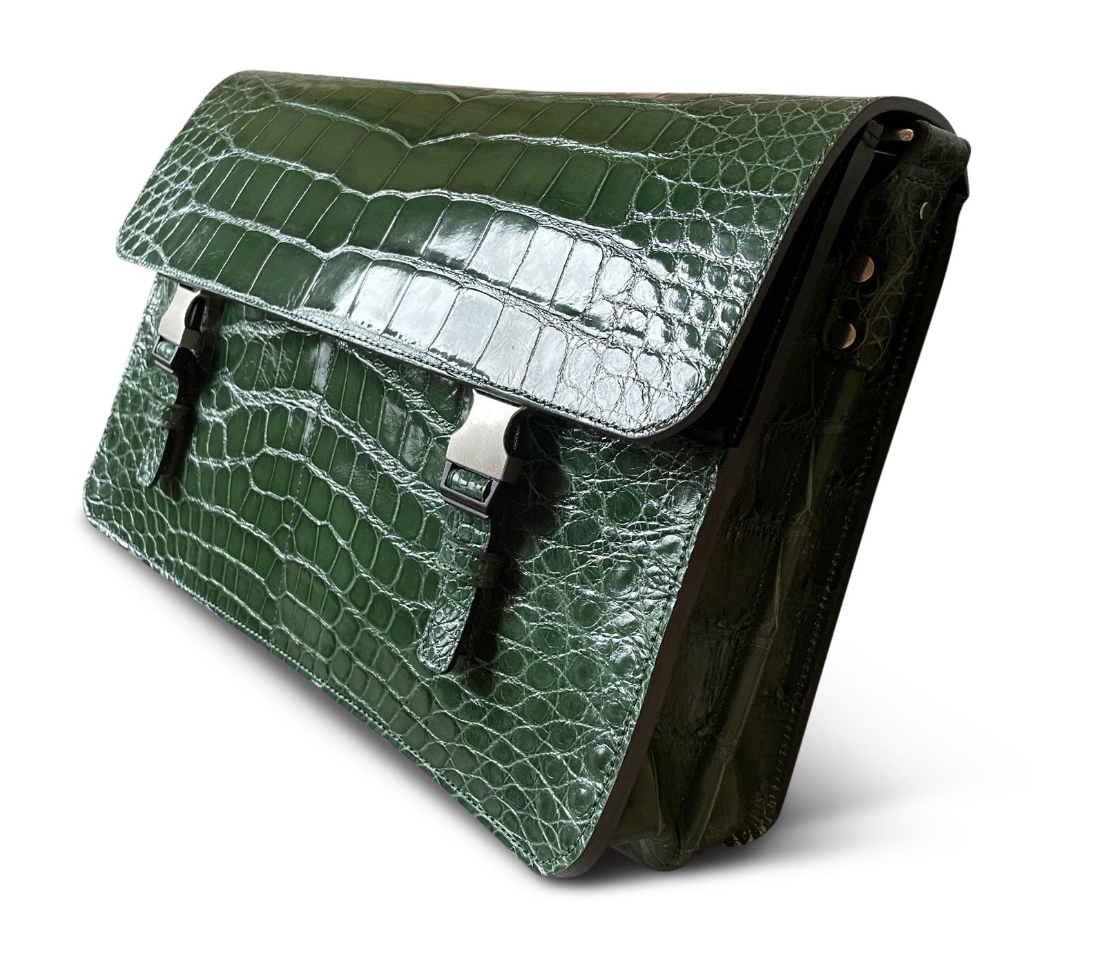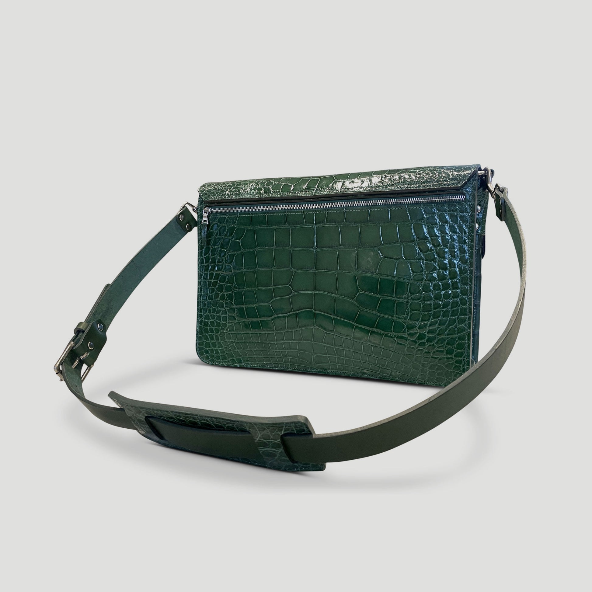 Invest in the highest quality and make a statement with our alligator leather messenger bag, guaranteed to turn heads wherever you go.