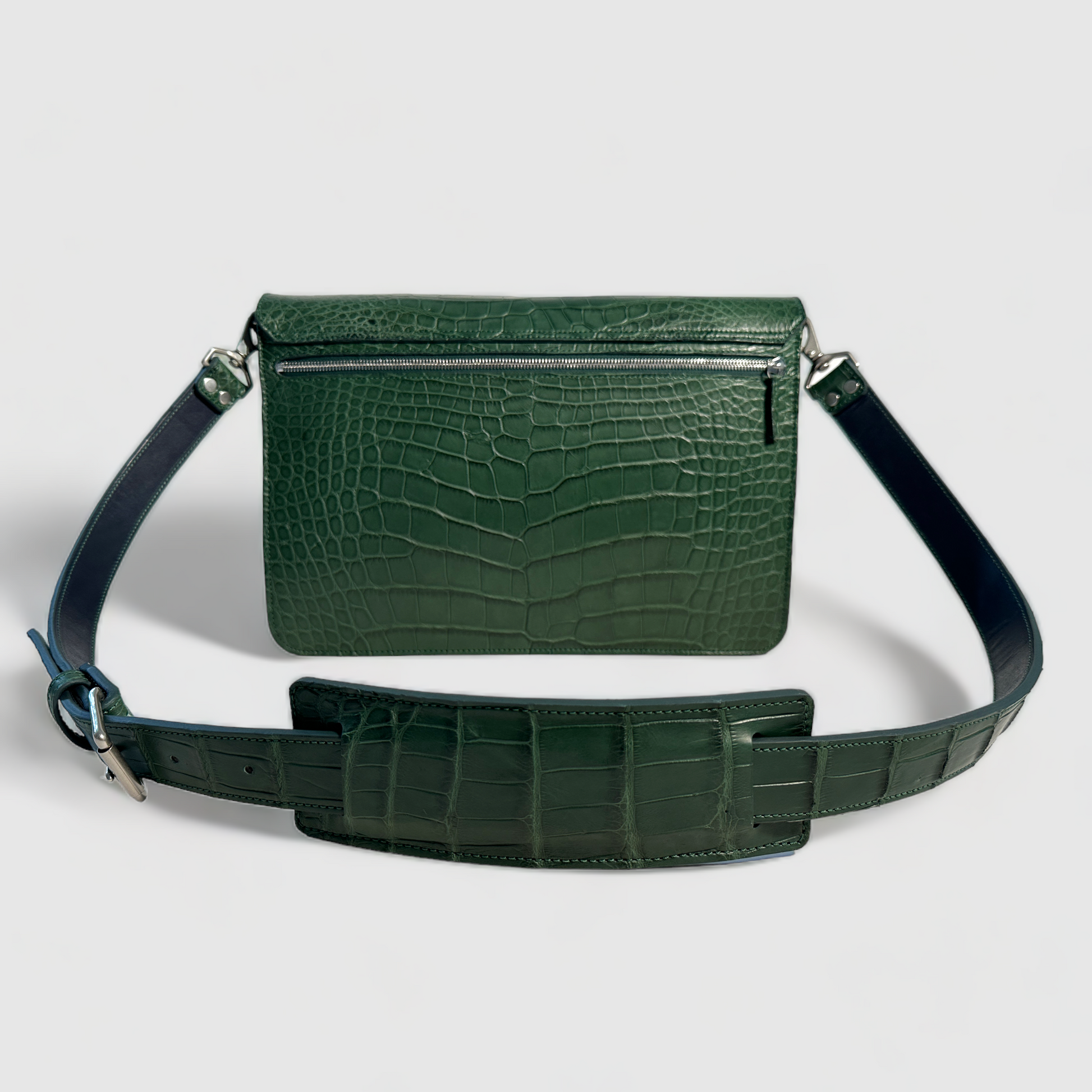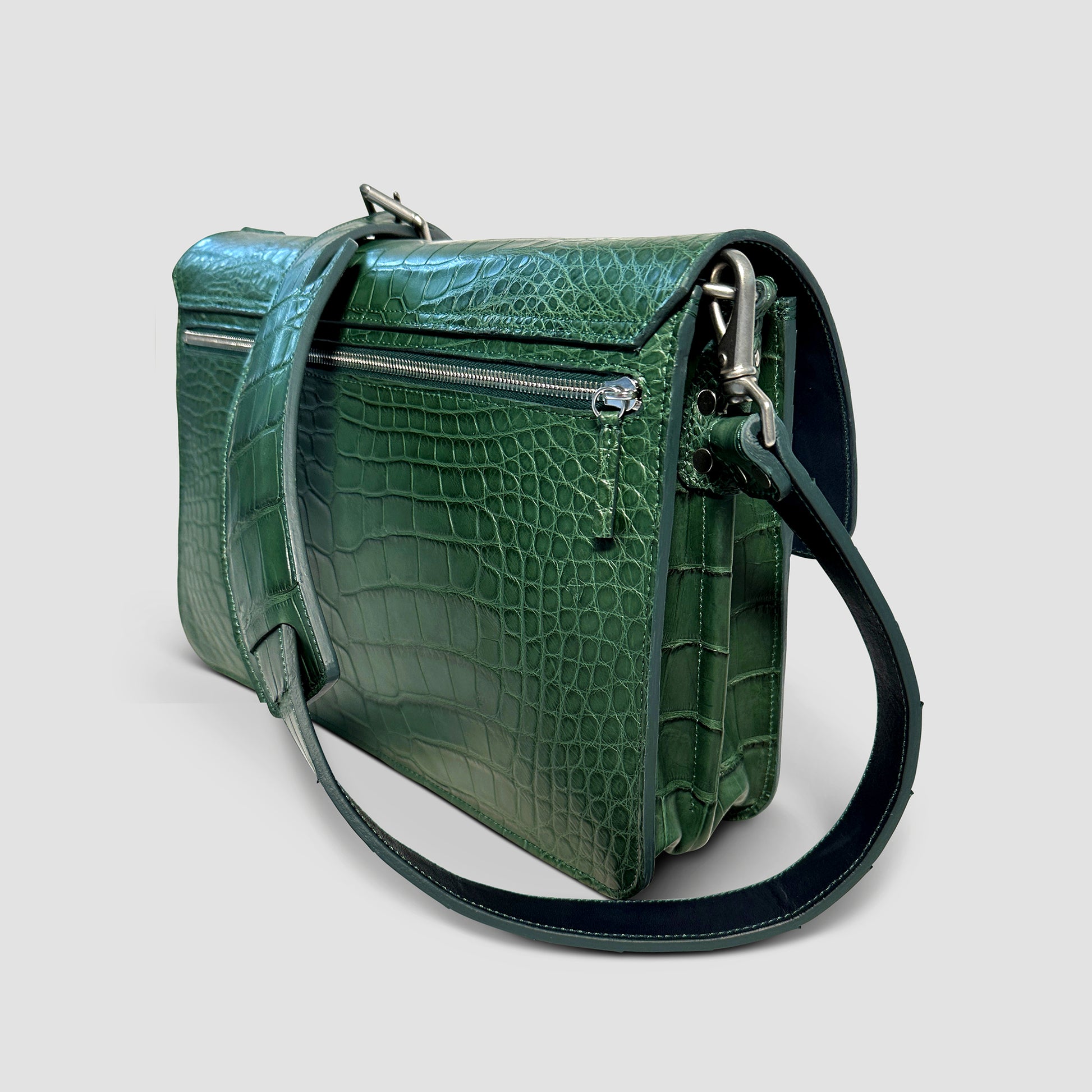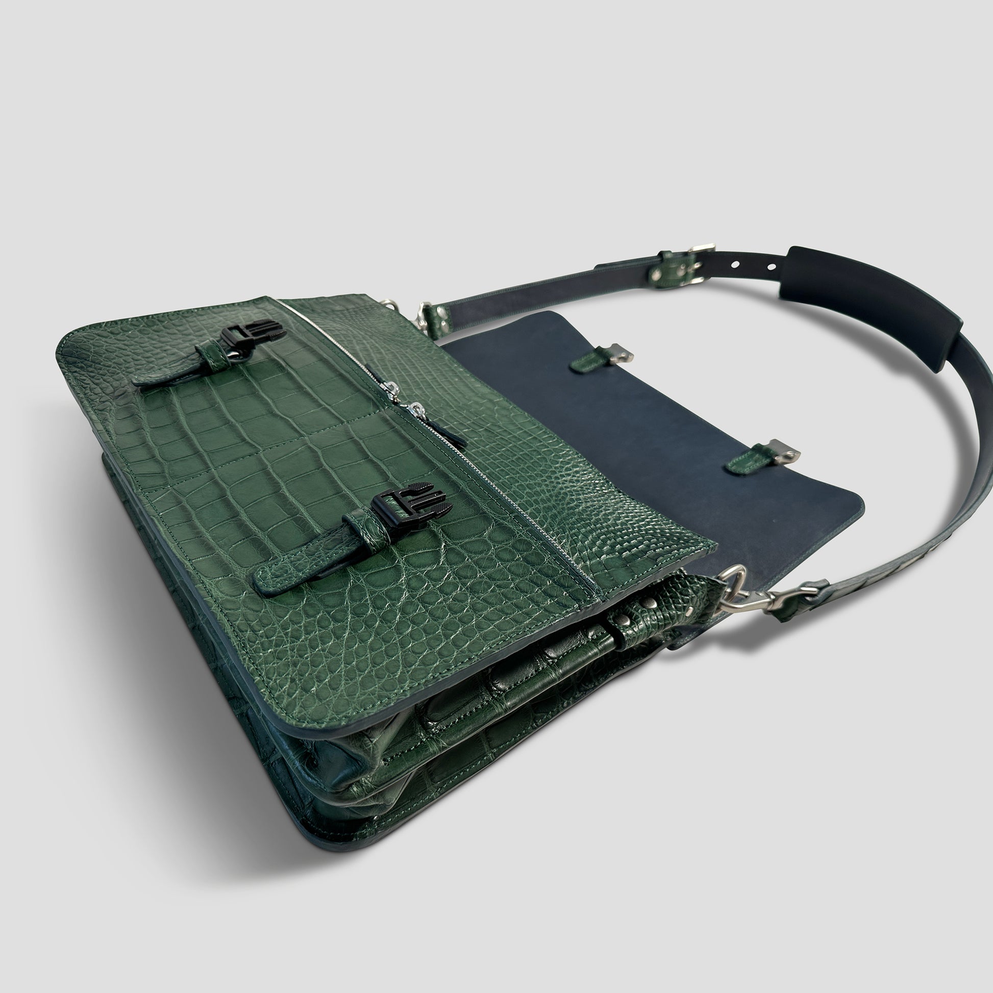 An exceptional expression of craftsmanship, this one-of-a-kind briefcase is meticulously handcrafted from sustainably sourced wild American alligator—chosen for its depth of character, natural variation, and unmistakable presence. Each piece is entirely unique, with richly dimensional textures and tones that evolve beautifully over time.
