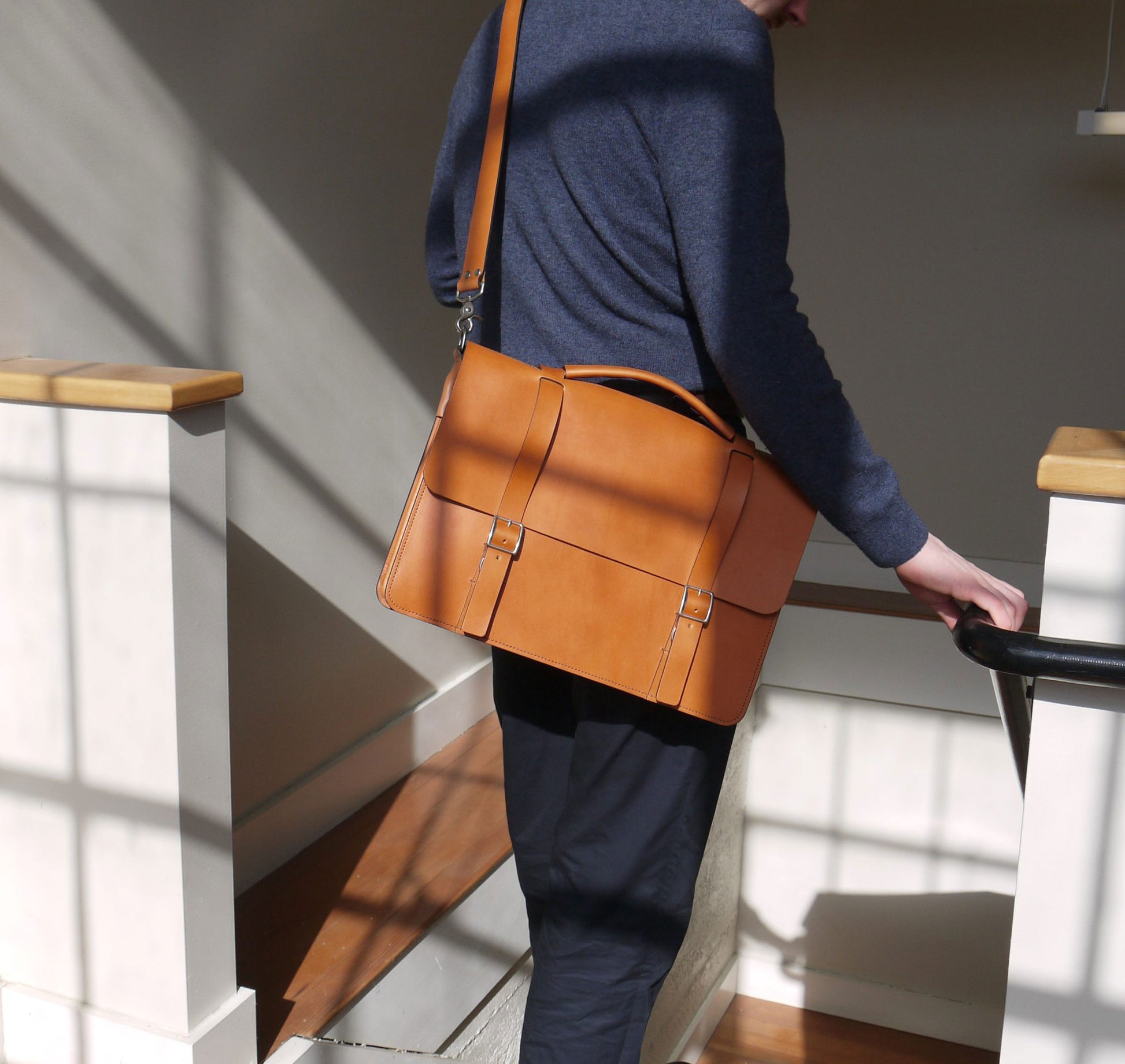 Our men's handmade leather messenger bag embodies a seamless fusion of classic design and modern Scandinavian minimalism - it’s our number one selling bag. Crafted from thick full-grain English bridle leather, this bag shows exceptional durability and timeless appeal. A full grain vegetable tanned leather with a smooth finish on both the top and back sides, yet it will retain its durability and form even under years of heavy use.