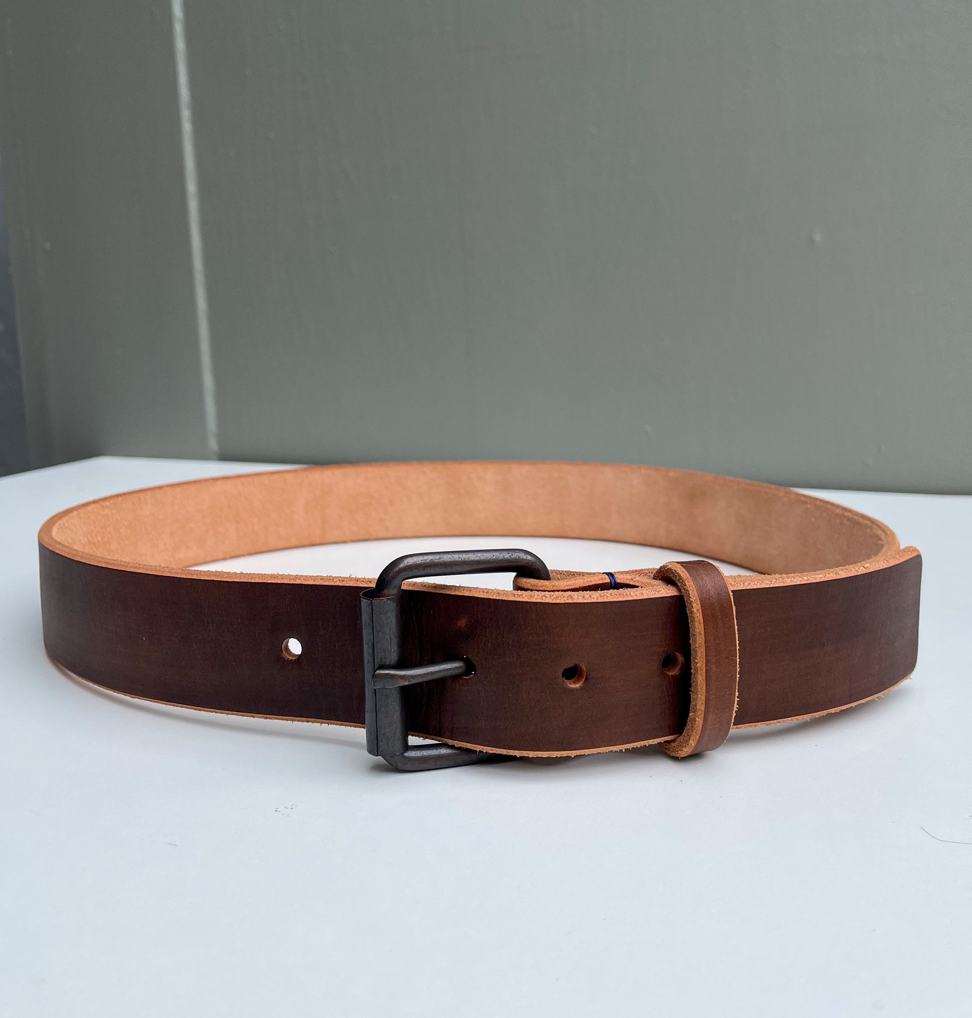 Minimal and made of the finest materials, this medium brown belt is a unique take on a classic necessity. Made of thick 8-10oz vegetable-tanned leather, and finished with copper finished hardware, this belt was designed to last a lifetime. And hand-dyed, the lustrous brown surface contrasted against the natural edges and underside creates a unique flair. If you’re going to invest in an everyday classic brown belt, make it memorable with what will surely become a lifetime investment.