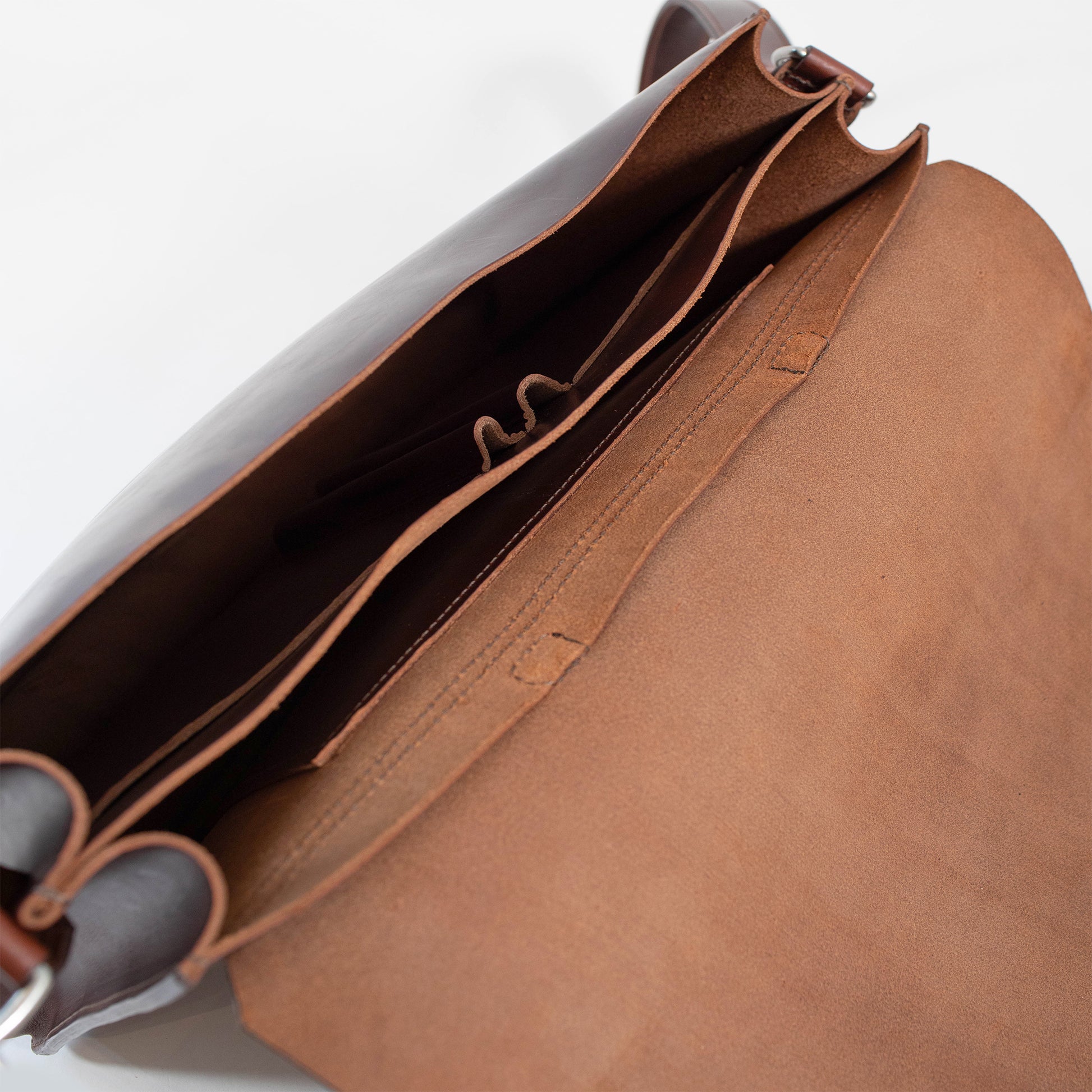Inspired by our Minimal messenger bag, this one-of-a-kind Horween Chromexcell messenger boasts discreet back grab handles, a secure magnet closure, and an expanded gusset for added space. Crafted with a passion for minimalism and exceptional workmanship, our timeless messenger bag is a customer favorite.