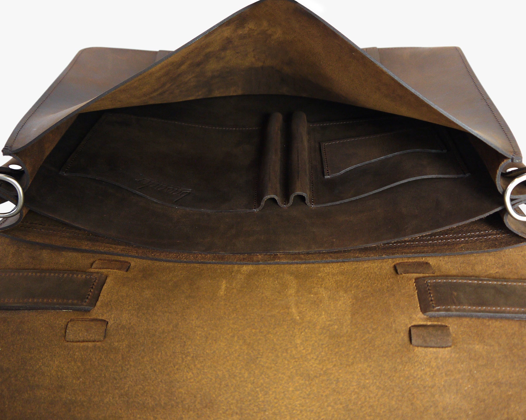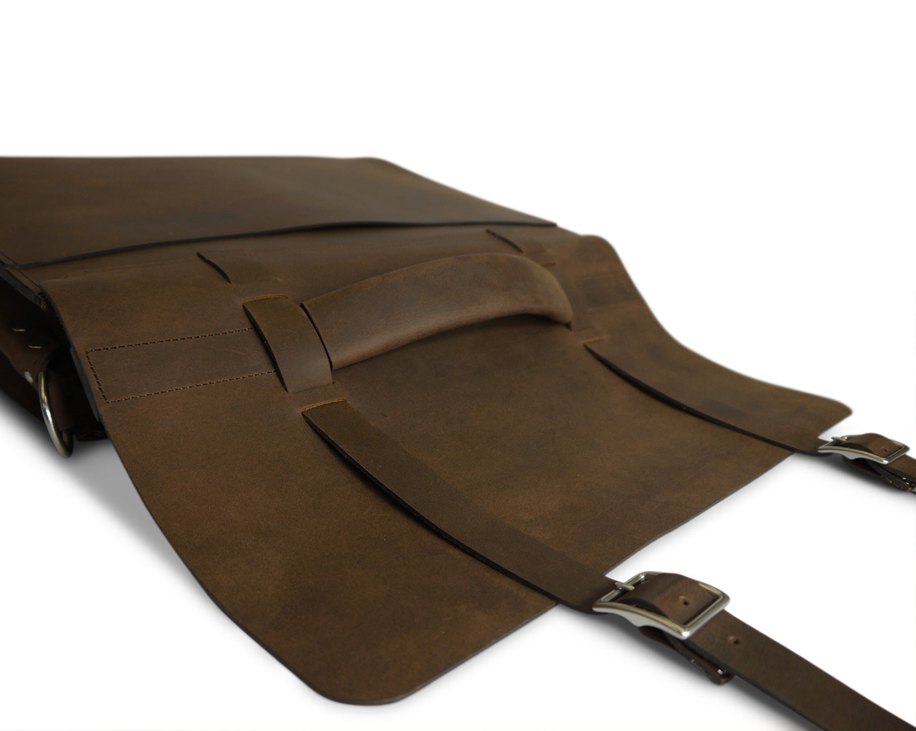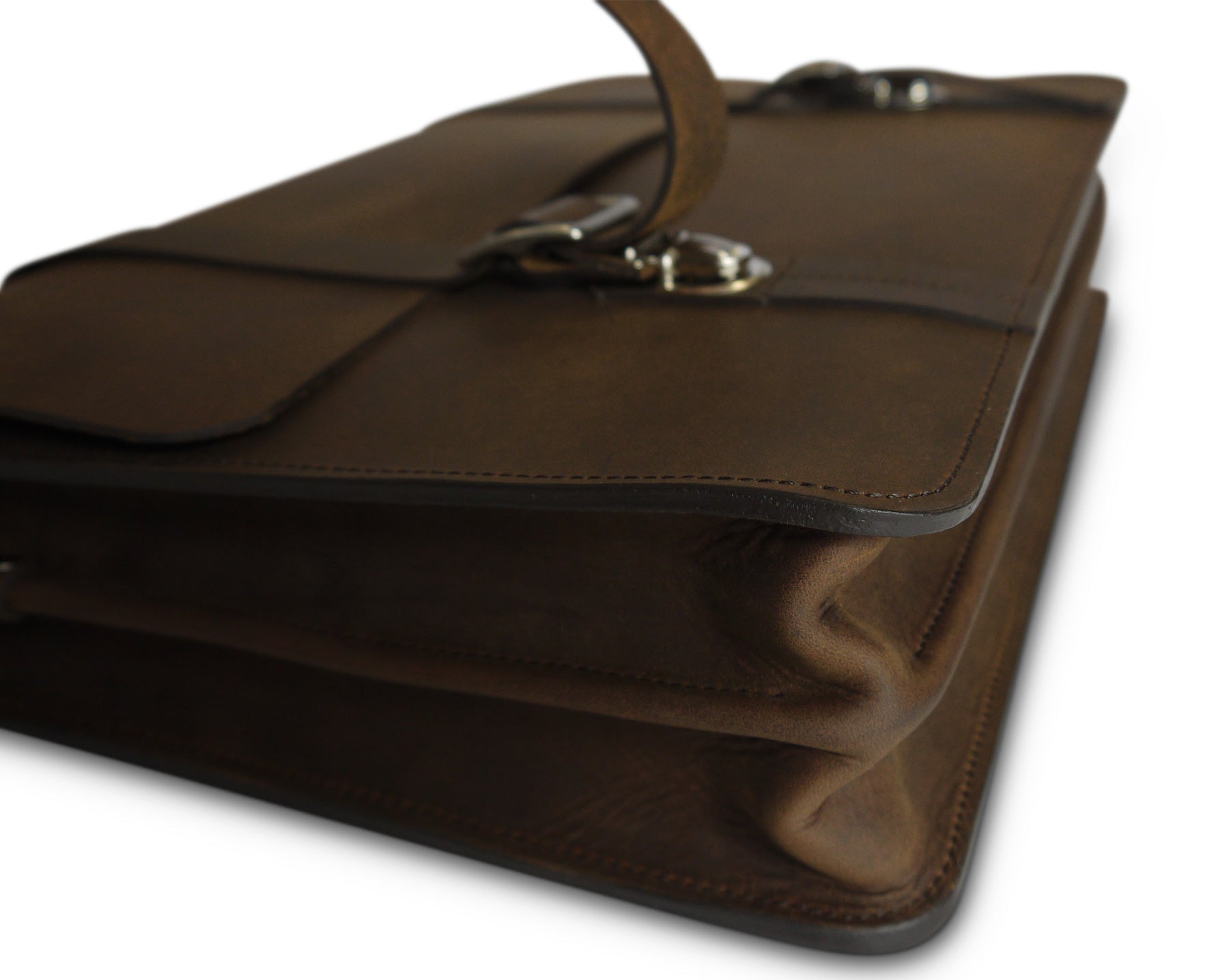 This oil-pull briefcase recreates our Classic Bridle Messenger bag using durable full grain leather. The benefits of pull-up leather are just incredible, and the amount of heavy damage it can sustain is impressive. Our top-of-line messenger is an arrangement of all of our best features: from divided gusset, to faux-buckles, burnished and dyed-edges, and a comfortable handle covering — This bag in bridle leather has for long been our number one selling bag, and is now available in Pull-up leather.