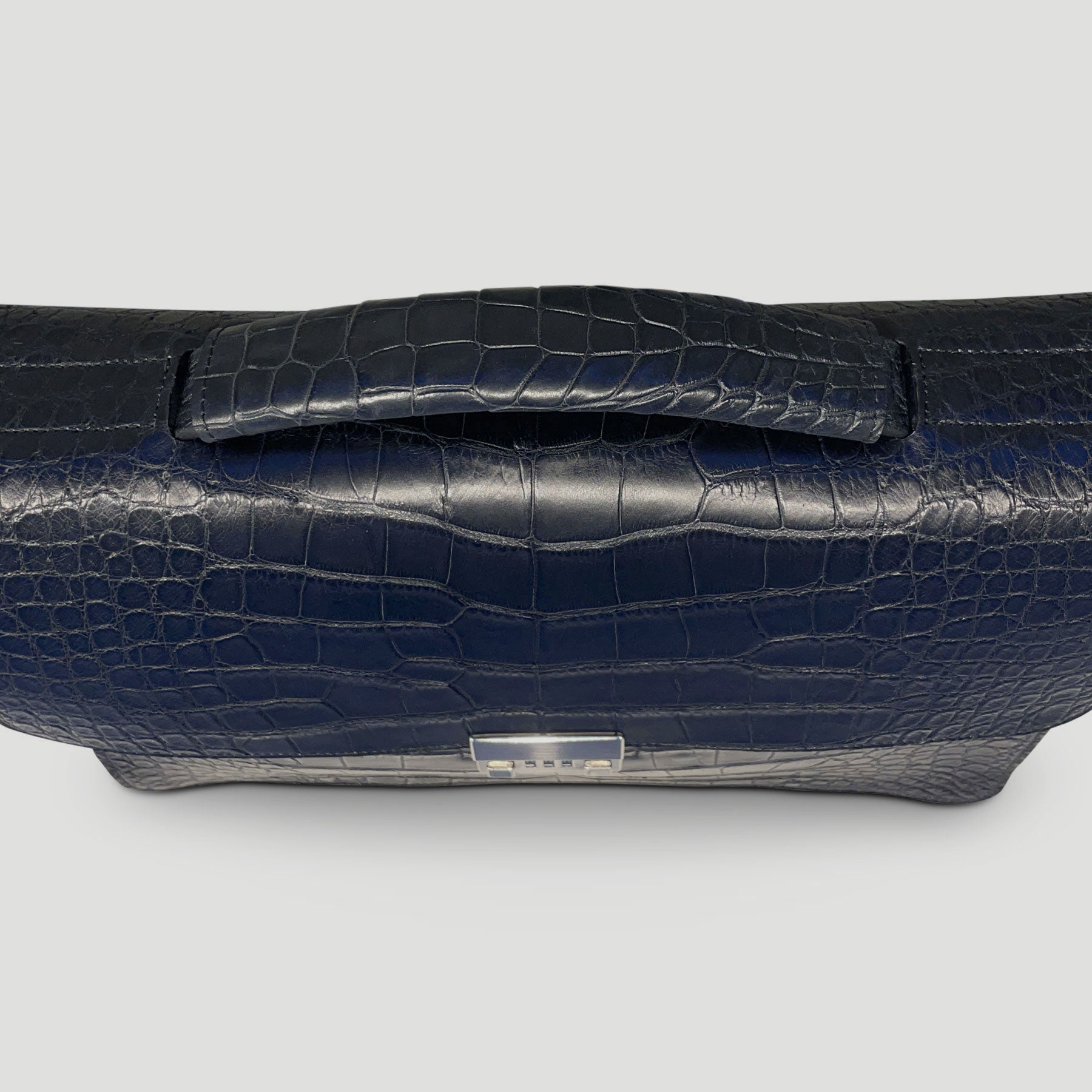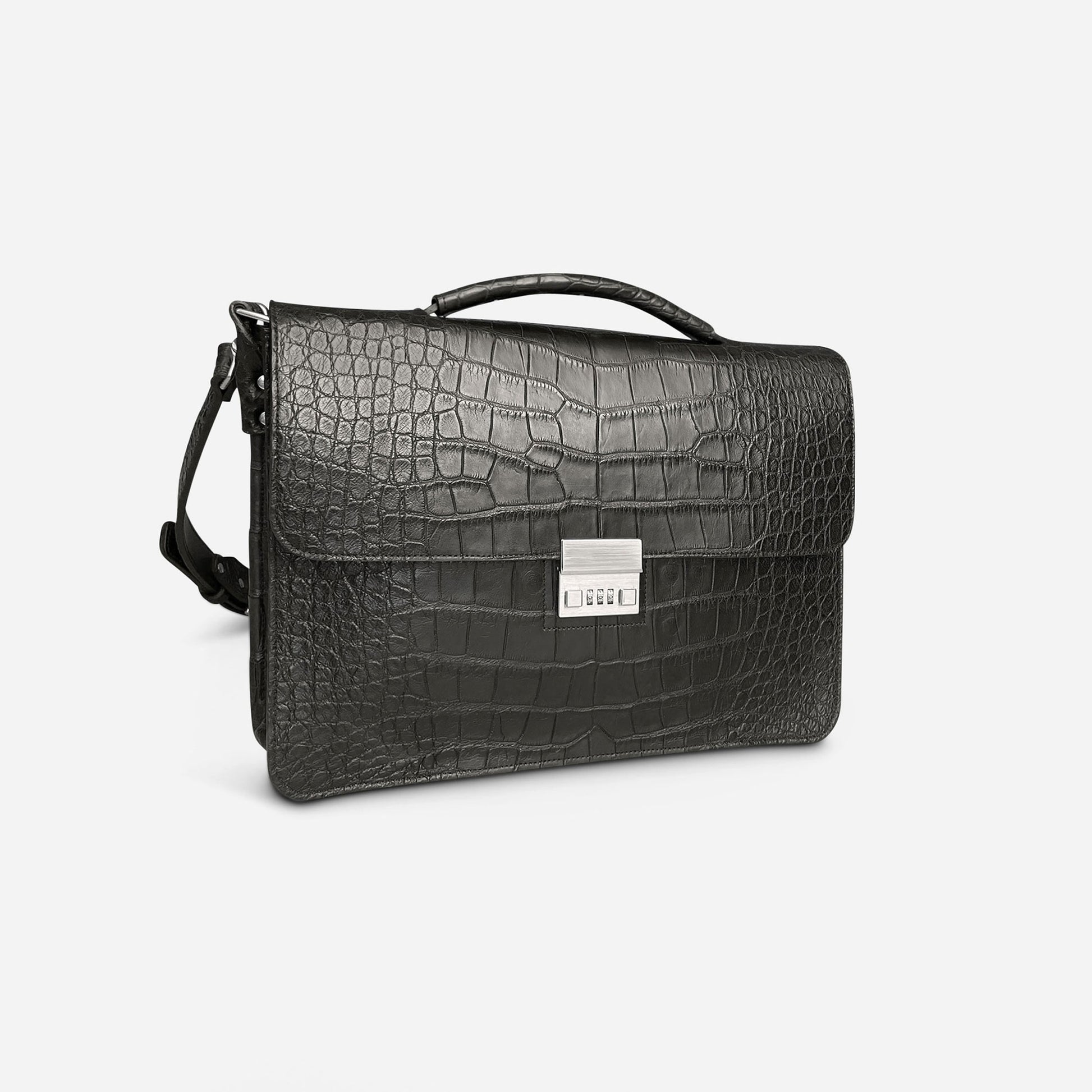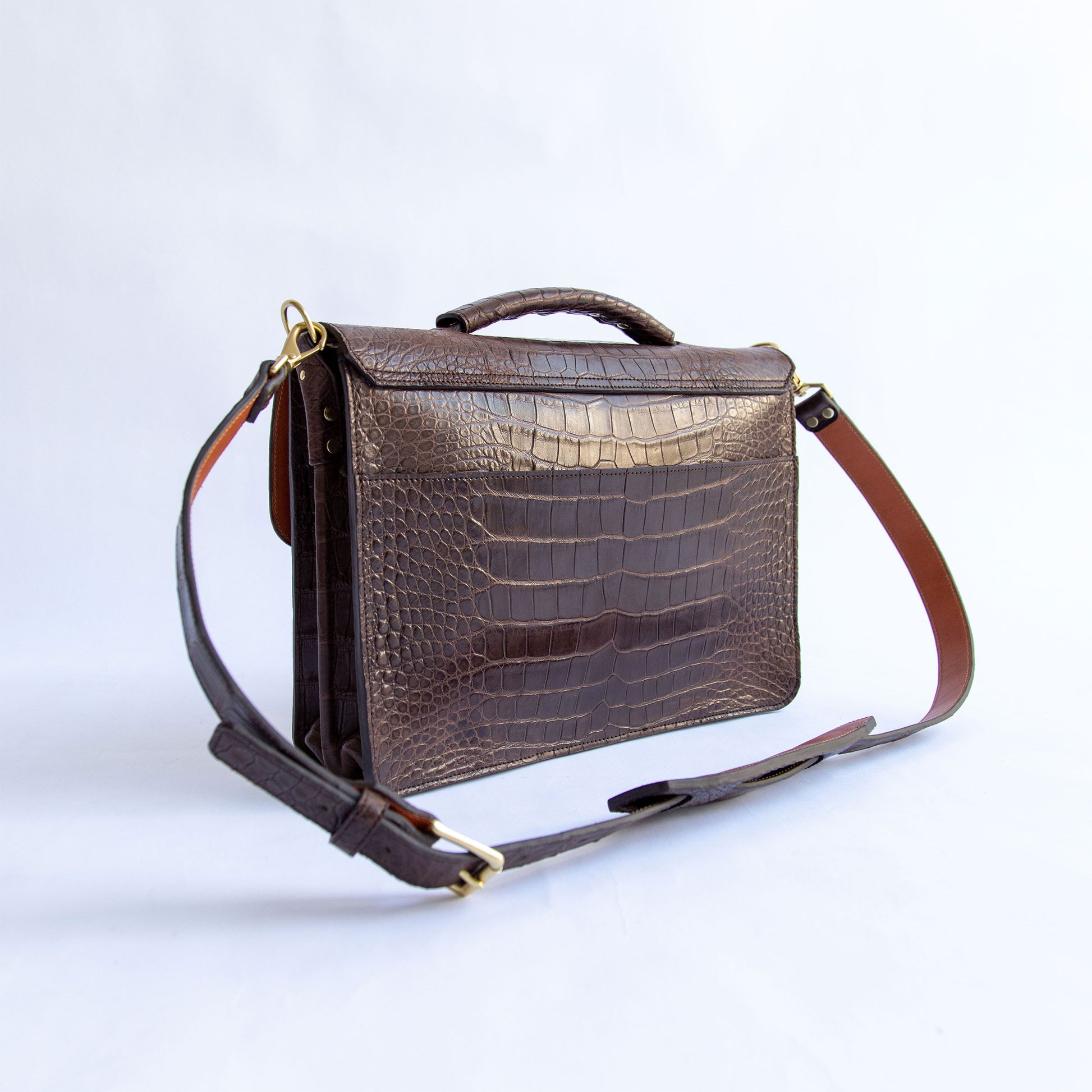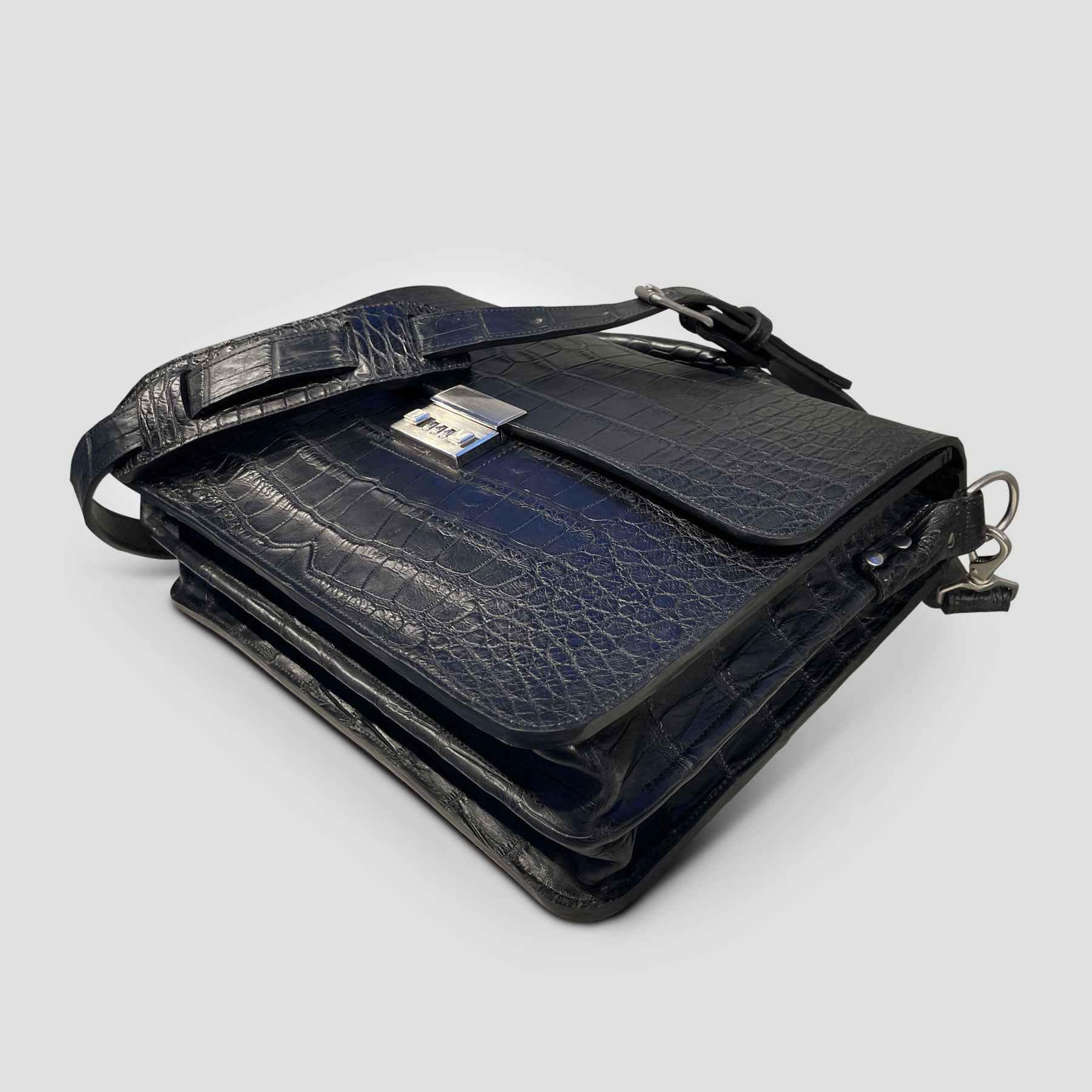 An eye-catching yet timelessly classic briefcase. With clean lines and minimal embellishment, the renowned skin and Amiet lock become the focal point in this design. Crafted from hand-dyed American Alligator, with a thick American English bridle leather lining that ensures its structure and shape will last for years, the briefcase effortlessly stands on its own even when filled.